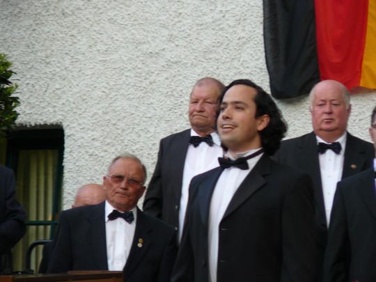 Zwischendurch sorgte Gonzalo Simonetti für die weiteren Glanzpunkte. Kongenial von Andreas Moschner am Klavier begleitet, beeindruckte der 26-jährige Bariton-Sänger aus Chile nicht zuletzt auch mit deutschen Liedern wie Robert Schumanns „Du bist wie eine Blume“ – und das, obwohl er erst seit gerade einmal zweieinhalb Jahren in Deutschland weilt, als Stipendiat an der Musikhochschule Mannheim. Und als er aus Mozarts „Zauberflöte“ das Stück „Der Vogelfänger bin ich ja“ präsentierte, schienen die Vögel in der Umgebung fröhlich zwitschernd mit einzustimmen. Mit jubelndem Beifall honorierten die Zuhörer dann auch den John-Denver-Hit „Take me home, country roads“, bei dem Simonetti das Solo beim Frohsinn übernahm.